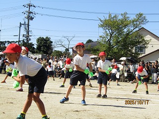 「全力・努力・協力」をスローガンに、子どもたちは最後まで一生懸命に競技や応援に取り組みました。学年をこえて声を掛け合う姿や、仲間と息を合わせて力を出し切る姿など、どの瞬間にも子どもたちの輝く笑顔と成長がありました。一人ひとりが力を出し切り、クラスやチームの仲間と心をひとつにした経験は、きっとこれからの学校生活にも生きていくことでしょう。当日は、保護者の皆さまや地域の皆さまから温かいご声援とご協力いただき、無事に運動会を終えることができました。