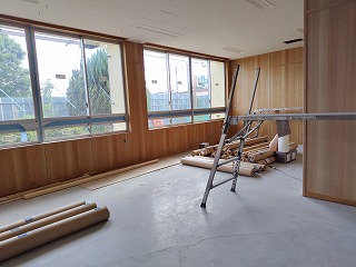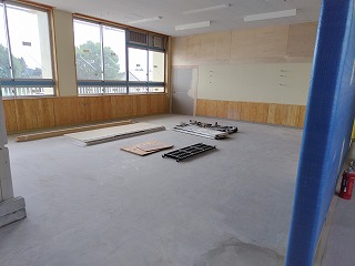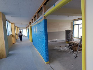 外壁の改修工事が終わり、校舎内部の内装工事を行っています。壁や天井など新しくなりました。新しい校舎は木がふんだんに使ってあります。また、旧校舎より明るい感じです。楽しみにしていてください。