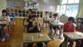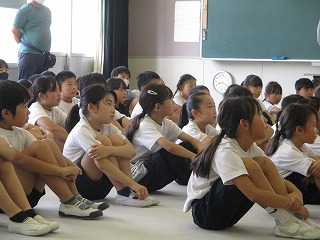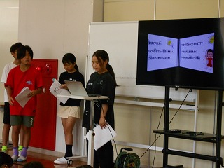 朝防災で関東大震災のことや避難所に避難したときの歯みがきの仕方(防災歯みがき)について6年生から発表をしました。給食後の歯みがきも防災歯みがきを行いました。
