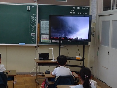3年生が防災学活で「雷から身を守る」授業を行いました。