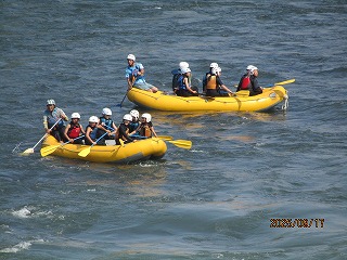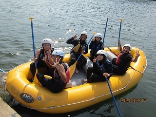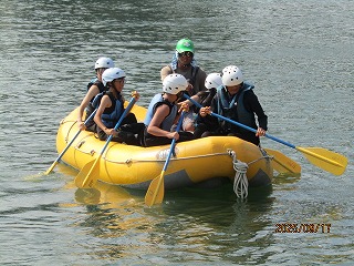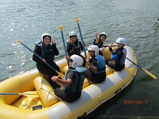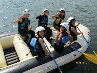 9月17日(火)に美濃加茂市にあるリバーポートパークにて6年生がラフティング体験を行いました。これは御嵩町の支援事業によって、町内の小学校6年生が行うものです。最初に、着替え、安全指導を受けた後、それぞれのグループに分かれて、ラフティング体験を行いました。最初は、少し怖がっていた児童もいましたが、そのうちになれ、川の迫力やスリルを思いっきり楽しむことができました。貴重な体験をすることができました。