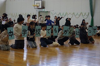 5年生が中心となり、全校で6年生に「ありがとう」の気持ちを伝えました。各学年で工夫した発表、心をこめて作ったプレゼントや体育館の飾り、5年生が製作した6年間の思い出画像アルバム、そして体育館に響き渡った「勇気100%」の歌声。6年生のあちこちからすすり泣く声が・・・。全校の「ありがとう」の気持ちが6年生にしっかりと伝わった感動の6年生送る会でした。5年生が中心となり、全校で6年生に「ありがとう」の気持ちを伝えました。各学年で工夫した発表、心をこめて作ったプレゼントや体育館の飾り、5年生が製作した6年間の思い出画像アルバム、そして体育館に響き渡った「勇気100%」の歌声。6年生のあちこちからすすり泣く声が・・・。全校の「ありがとう」の気持ちが6年生にしっかりと伝わった感動の6年生送る会でした。