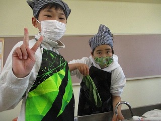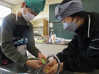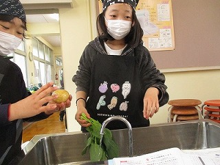 家庭科で調理実習をしました。事前にグループで考えた計画に沿って、じゃがいも、人参、ほうれん草、ブロッコリー、キャベツを茹でました。初めてのことや、ハプニングもありましたが、教え合って楽しく調理しました。自分たちで作ると、一段とおいしく感じますね。おいしくいただきました!