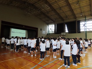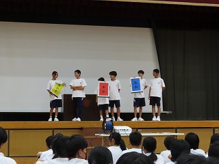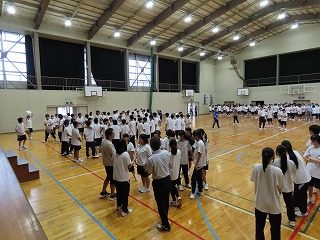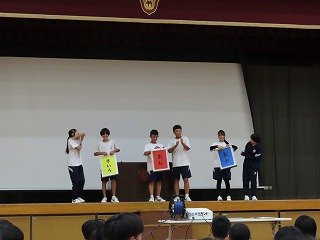 夏休みから体育大会実行委員が準備をし、いよいよ9月12日に体育大会に向けて、団決め、係決め、団リーダー会が行われ、全校が体育大会に向けてのスタートを切りました。
